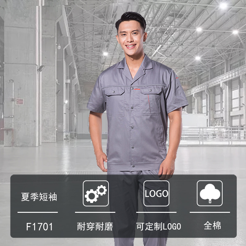 君御JY-纯棉S1201夏季全工艺全棉薄款短袖工作服套装灰色