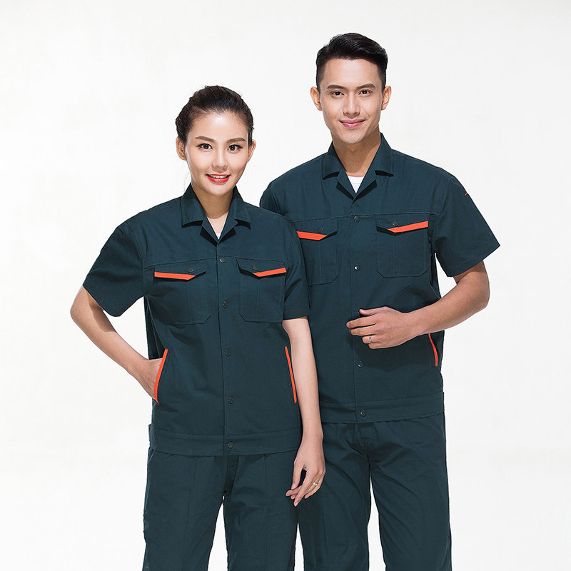 君御JY-纯棉S1206夏季全工艺全棉薄款短袖工作服套装墨绿色