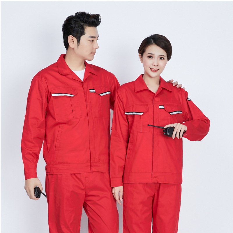 君御JY-纯棉SL504夏季全工艺全棉薄款长袖工作服套装大红色