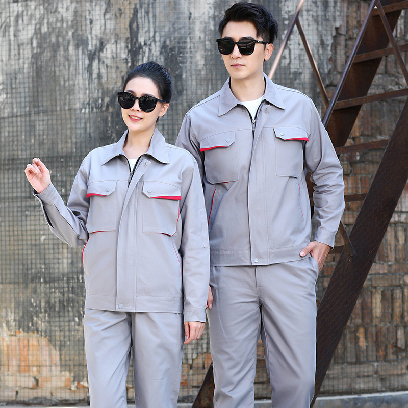 君御JY-纯棉SL802夏季全工艺薄款全棉长袖工作服套装灰色