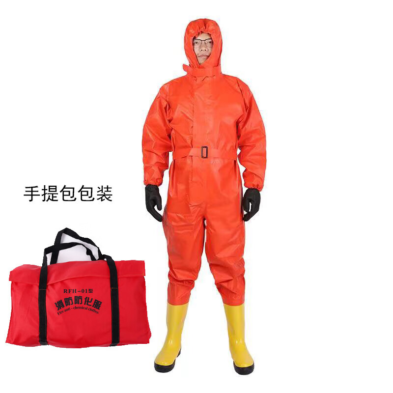 海盾 半封闭耐酸碱防化服普通红色(靴子连体/手套分开)