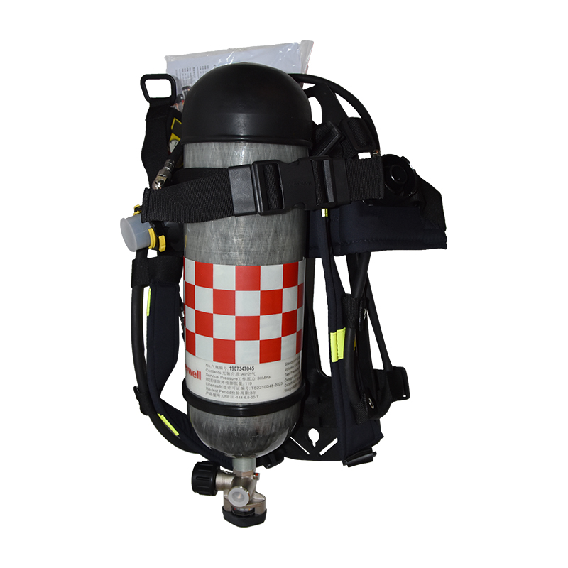 是否带他救援:是 BC1868527L EN137-2006 胸部压力表是否带夜光:是 气瓶瓶表:带 中压管类型:三通 中国 气瓶材质:碳纤维气瓶 理论使用时间:45min 气瓶容积:6.8L 30mpa 500L/min 面罩与供气阀连接方式:快速卡接式