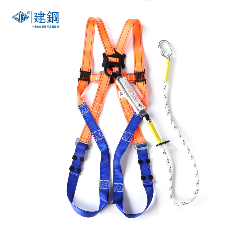 聚酯安全带,合金钢配件 橙蓝色 尺码:均码 胸部挂点:有 背部挂点:有 腰部两侧挂点:有 腰部臀部衬垫:有 GB6095-2021、EN361 26KN