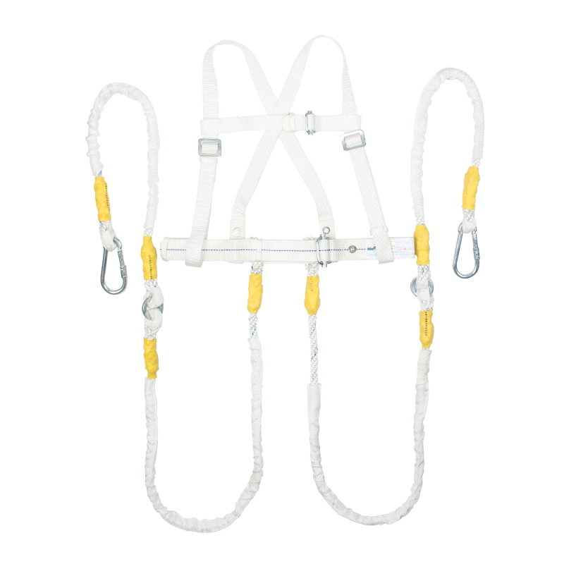 聚酯 白色 尺码:均码 胸部挂点:无 背部挂点:有 腰部两侧挂点:无 肩部连接环:无 腰部臀部衬垫:无 大于22KN 2m双绳双钩