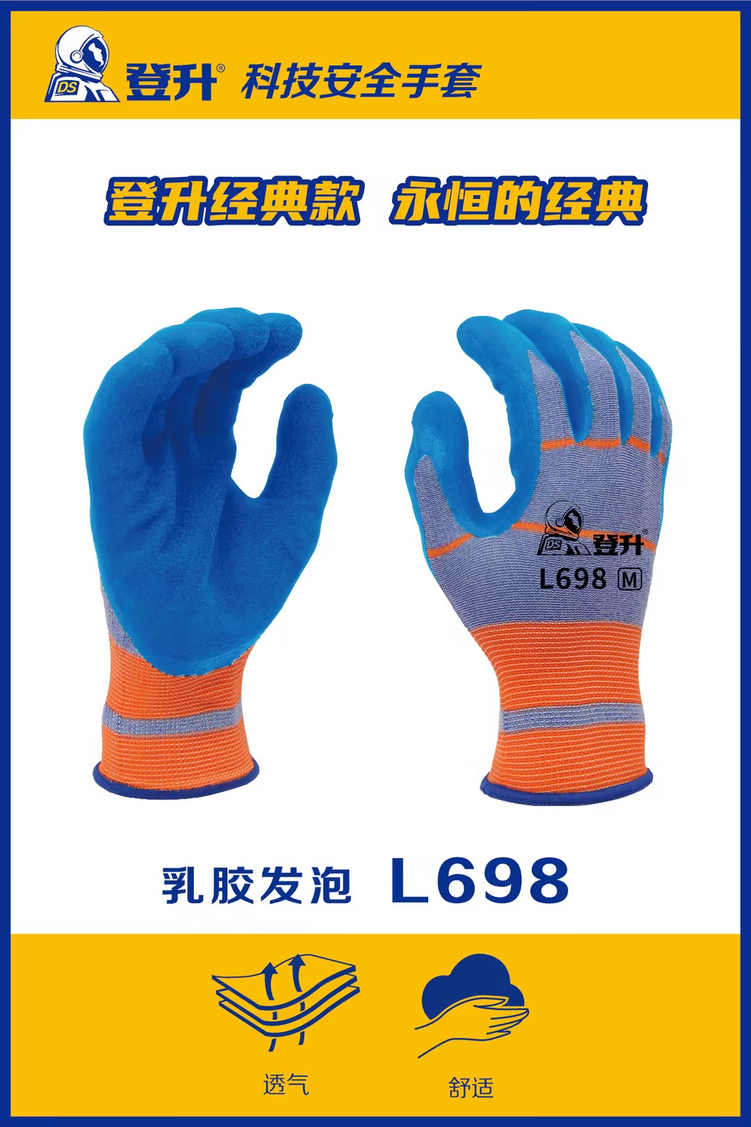 登升 L698 13针包覆丝掌浸蓝色乳胶发泡