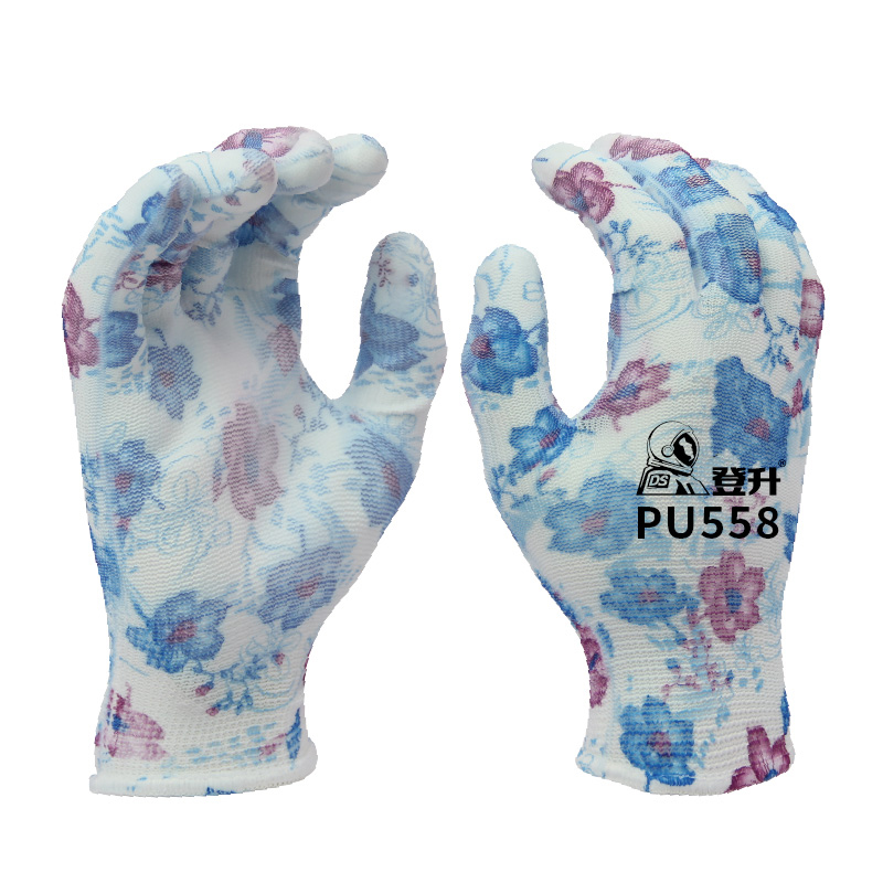 登升 PU558 十三针涤纶印花PU涂掌手套(四花色)