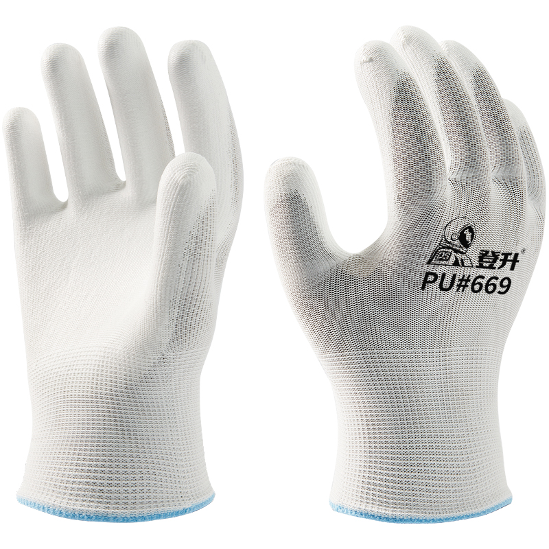 登升669#-13G涤纶PU掌浸光面手套