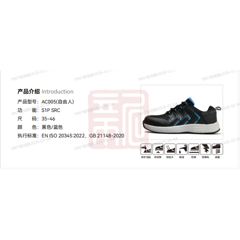 安腾 AC005ZYR自由人S1P防砸防刺穿防静电安全鞋