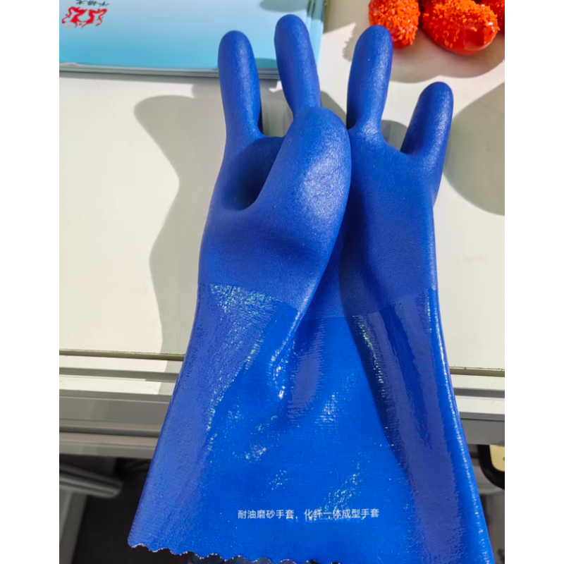 尺寸:均码 式样:全浸塑 纯棉针织布 涂层材料:PVC 袖口:直筒袖口 颜色:蓝色 28cm 是否有粉:否 防静电:否 通用型|耐油|防滑|耐酸碱 PVC
