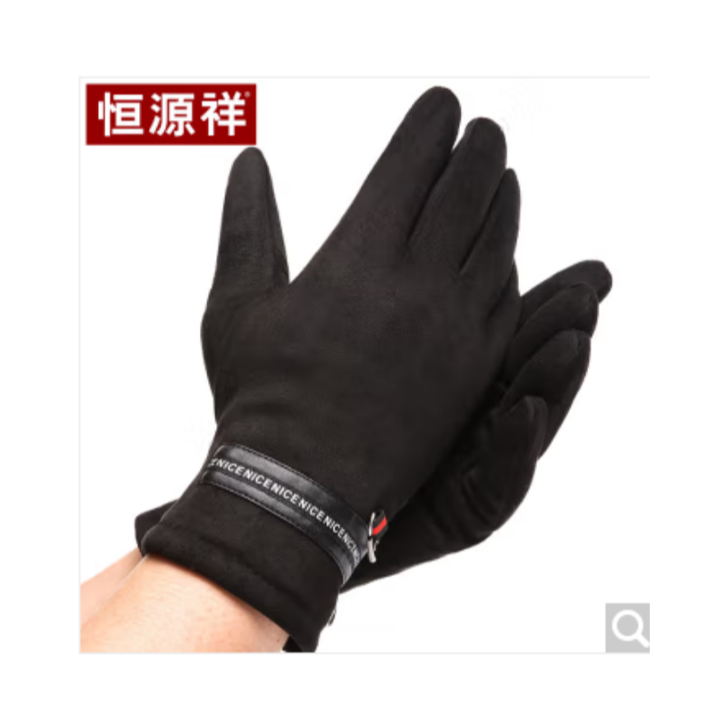 恒源祥 50M19938黑色 厚款加绒麂皮绒触屏户外骑行手套