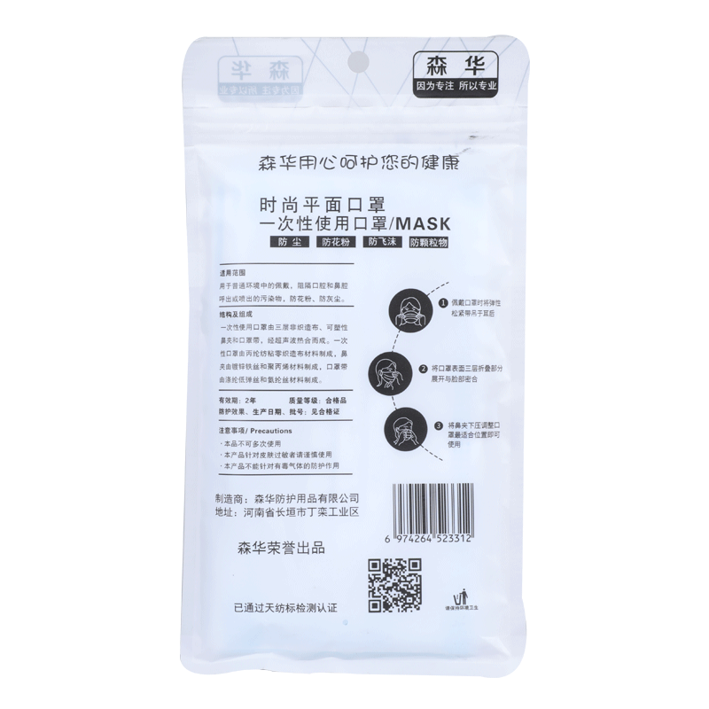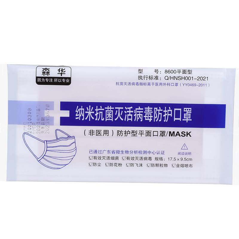 森华 8600平面型抗菌灭活病毒防护口罩宽耳带