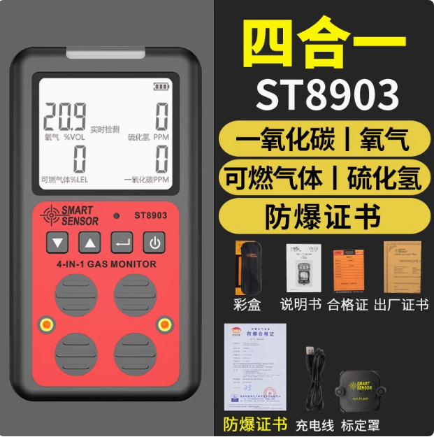 香港希玛 AS8900G+泵 LEL/O2/CO/H2S四合一气体检测仪